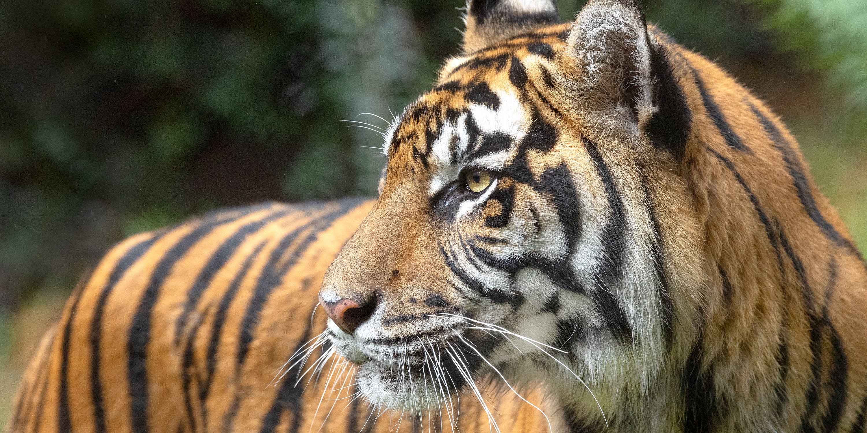 Sumatran tigers are a conservation success story! They are one of the keystone species we work to protect through our Asia Conservation Hub. There are only an estimated 400 to 600 remaining in native habitats, but thanks to conservation populations like the one at the San Diego Zoo Safari Park, their numbers are increasing. You may be able to see Sumatran tigers while enjoying Tull Family Tiger Trail, or spot them passing through on a wildlife live camera!