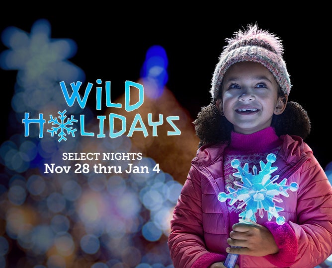 Wild Holidays activities and entertainment are included with admission tickets or membership; wildlife viewing is limited during this evening event.